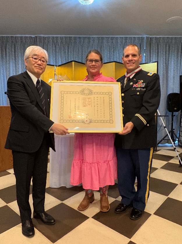 Col. Browne attended the ceremony with his wife and family members. Consul-General Naganuma conveyed his congratulations and presented the decoration and certificate. In his remarks, Col. Browne expressed his deep gratitude and reflected that receiving such an honor on March 11—the anniversary of the Great East Japan Earthquake—did not feel like a coincidence. Having been engaged in “Operation Tomodachi” at the time, he spoke movingly of his memories working with the people of the affected areas and members of the Japan Self-Defense Forces, and of the special bond he feels with Japan.